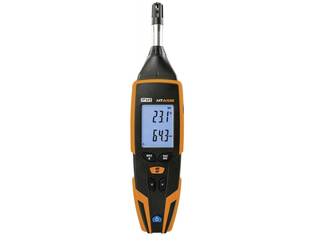 HTA106 měří teplotu, vlhkost vzduchu a rosný bod pomocí integrovaného senzoru. Je vybavena podsvícením displeje pro usnadnění čtení ve špatně osvětleném prostředí.Tento text byl přeložen strojově.