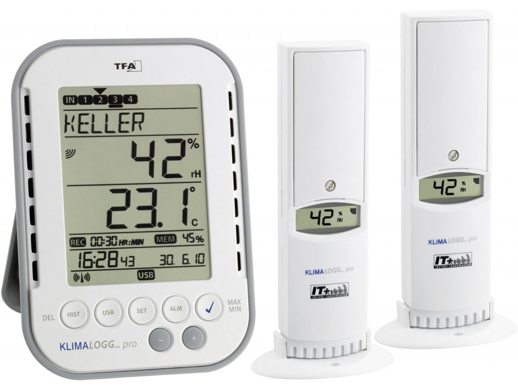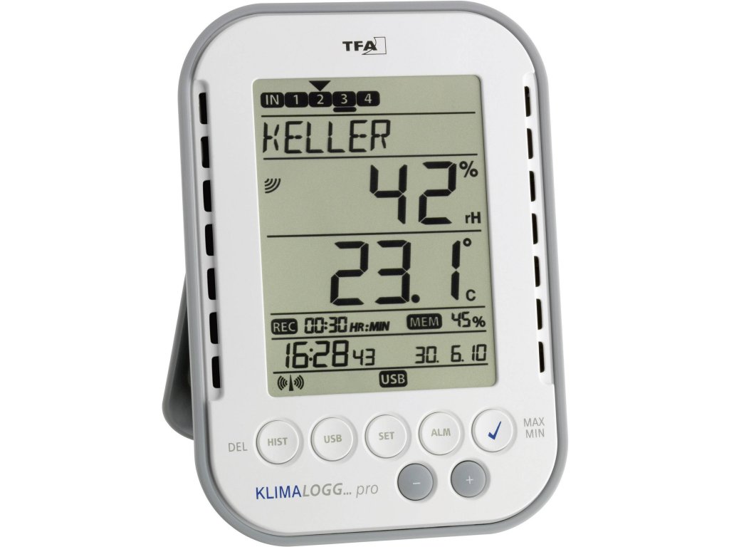 TFA Dostmann KLIMALOGG PRO Starter Set vlhkoměr vzduchu (hygrometr), 1 % rF-99 % rF, TFA klima v místnosti, startovní sada , Funkce dataloggeru