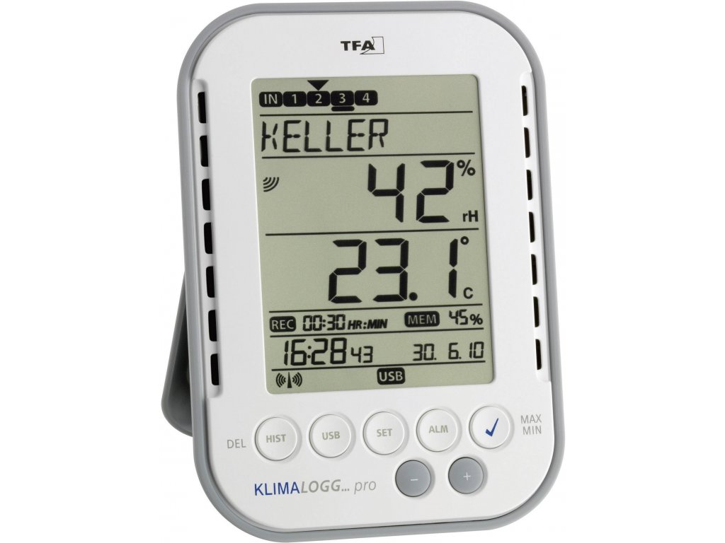 TFA Dostmann KlimaLogg Pro vlhkoměr vzduchu (hygrometr), 1 % rF-99 % rF, datalogger a bezdrátové USB rozhraní , detektor bodu tání/plísně