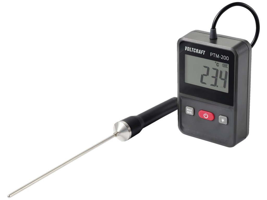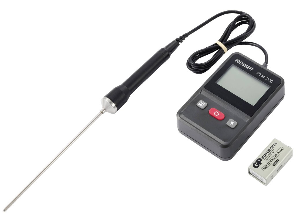 Ať už v kapalinách, plynech nebo pro měření teploty jádra - přístroj VOLTCRAFT PTM-200 je univerzálně použitelný. Například při zabezpečování kvality nebo v laboratořích a řemeslných dílnách. Displej s bílým podsvícením zobrazuje teplotu až na 0,1 °C. Přístroj má funkci Max/min, indikaci stavu baterie a je vodotěsný podle IP65. Měřící čidlo PT1000 má průměr 3,5 mm a je součástí dodávky také 9V baterie a návod k obsluze.