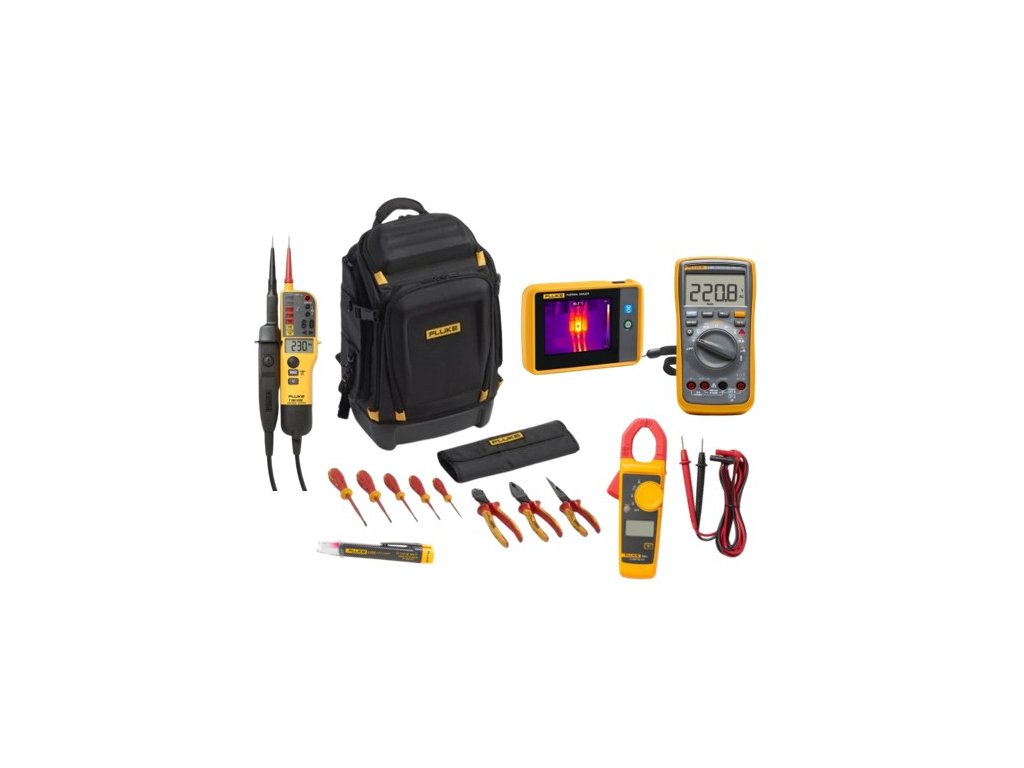 Fluke IKPK7 - praktická sada obsahující batoh Fluke PACK30, pět izolovaných šroubováků Fluke a troje izolované elektrikářské kleště Fluke do 1000 V