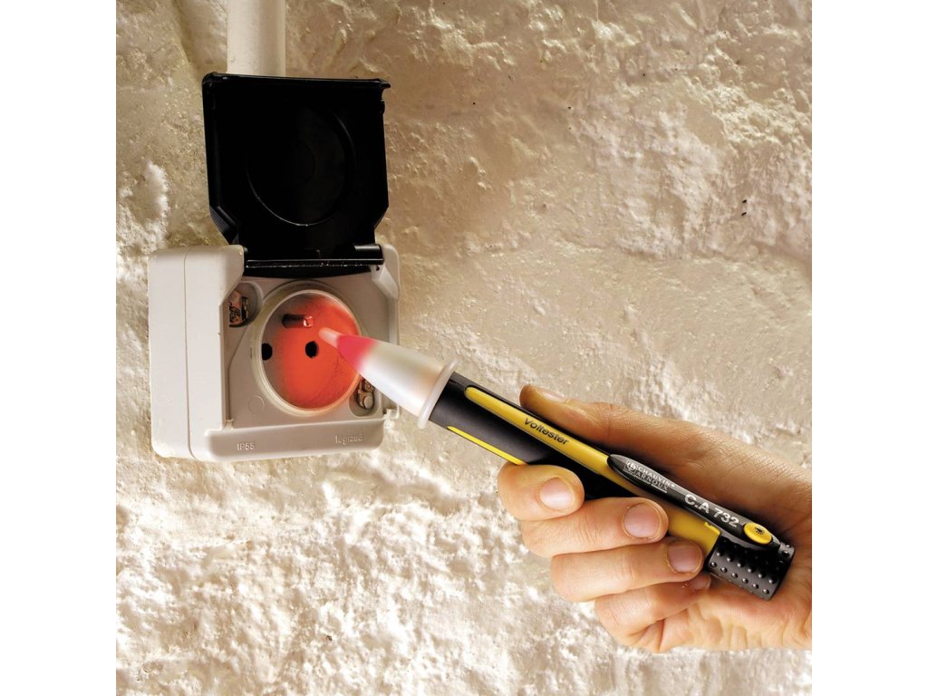 Bezkontaktní zkoušečka napětí se snadnou obsluhou. V přítomnosti napětí 230 V AC - 50 / 60 Hz se hrot přístroje rozsvítí.Specifikace: