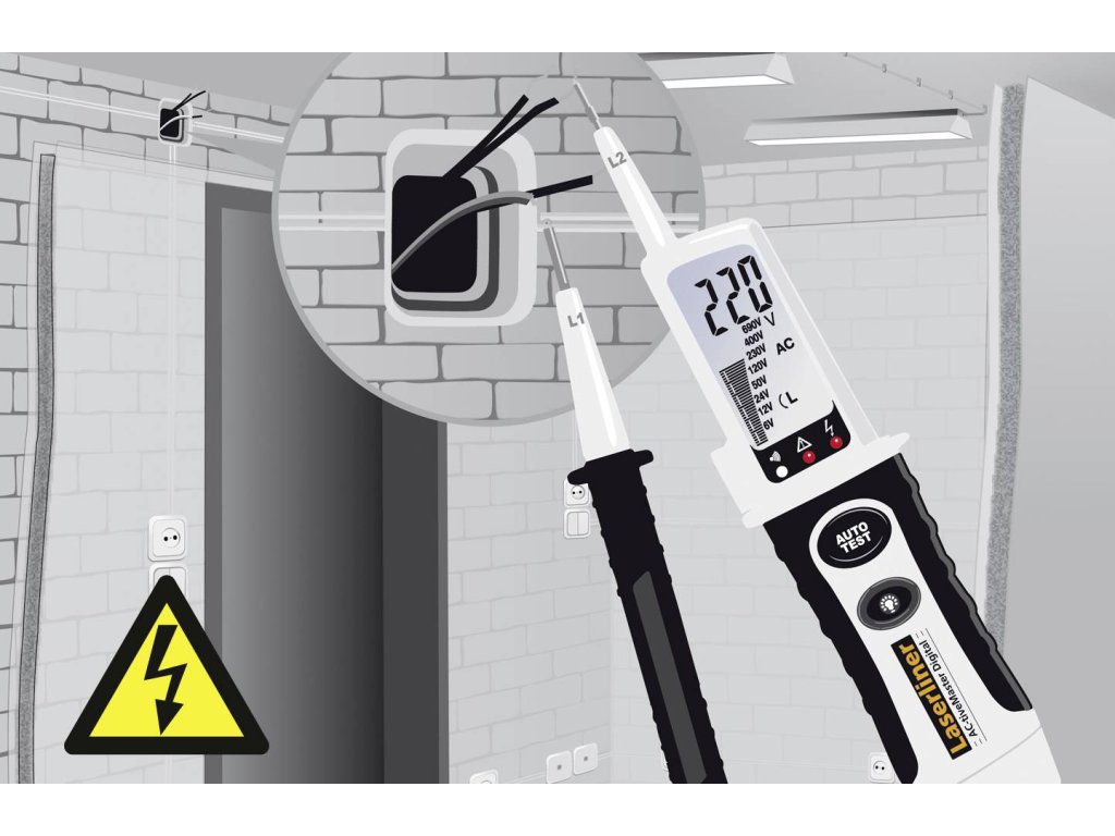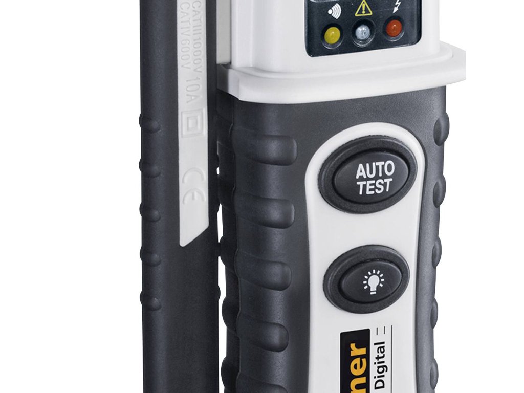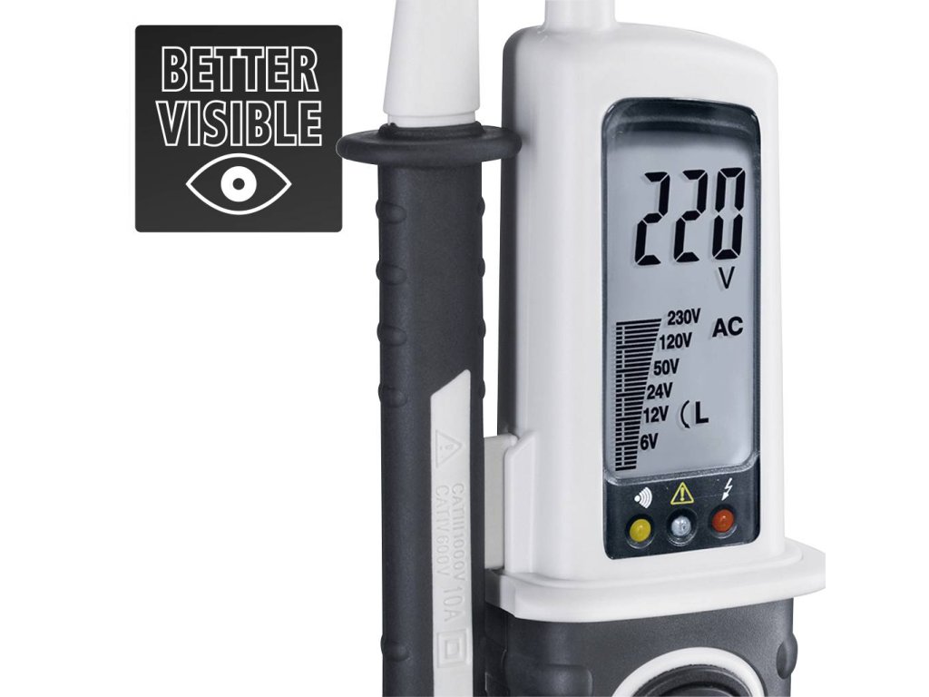 Spolehlivá a rychlá zkoušečka napětí · Automatické přepínání mezi testováním a měřením · Test sledu fází se zobrazením směru · Jednopólový test fáze · Automatický test průchodnosti s akustickou signalizacíSpecifikace: