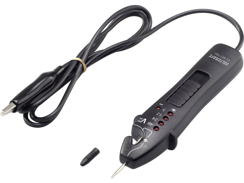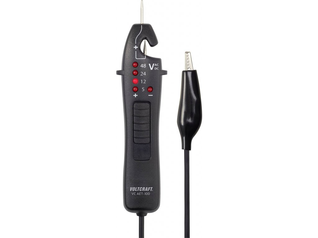 Malá a kompaktní pro automobiliy a elektrokolaSe svým příručním designem představuje Voltcraft VC AET-100 ideálního partnera pro měření napětí v automobilech a elektrokolech. Umožňuje měření přes testovací hrot včetně kluzné funkce a také snadné a rychlé měření napětí na izolovaném kabelu. Celkově Voltcraft AET-100 měří pět různých úrovní napětí, zobrazuje polaritu a ani k tomu nepotřebuje baterii. Po použití se dá díky své kompaktní podobě rychle znovu složit do kapsy.Specifikace: